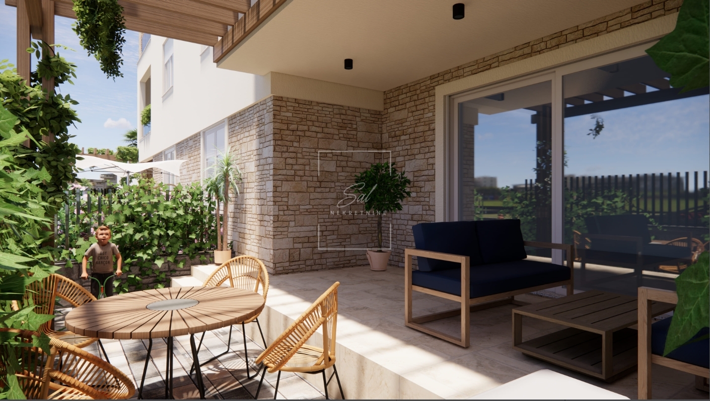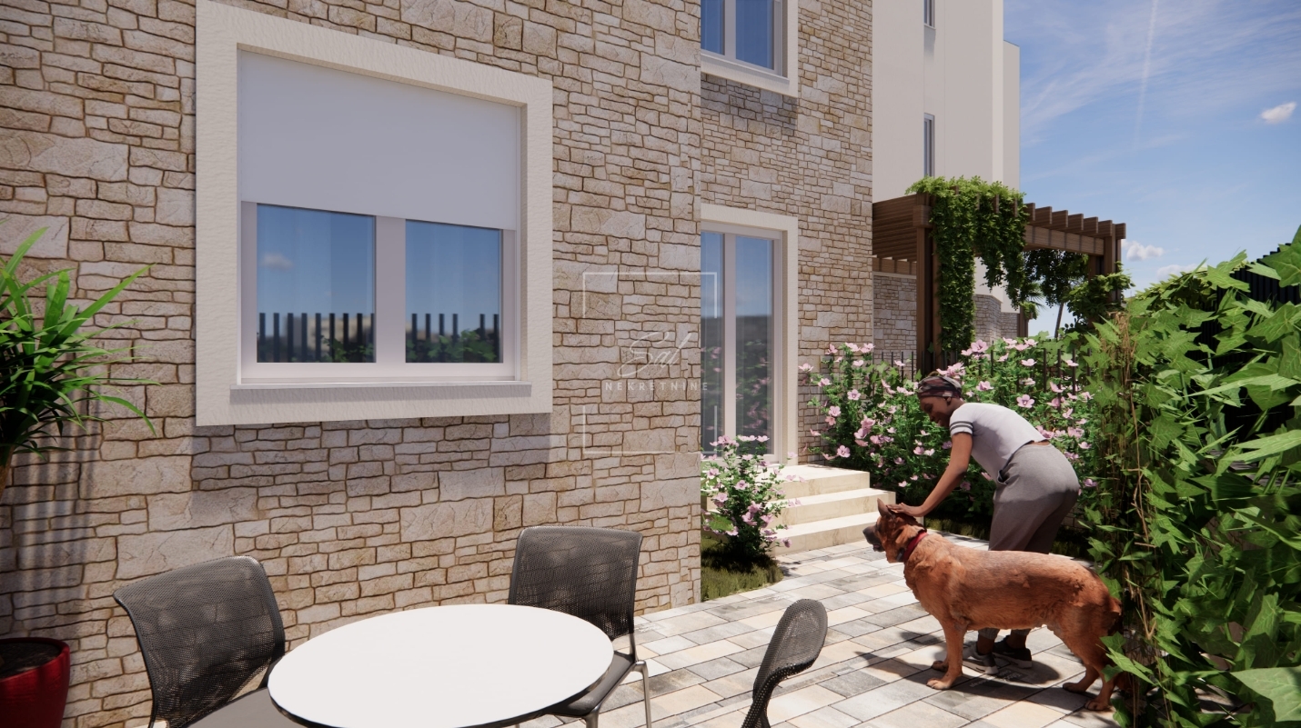 U ponudi je moderan i funkcionalan stan u prizemlju zgrade sa terasom, vrtom i parkirnim mjestom što ga čini idealnim odabirom za ugodan obiteljski život.