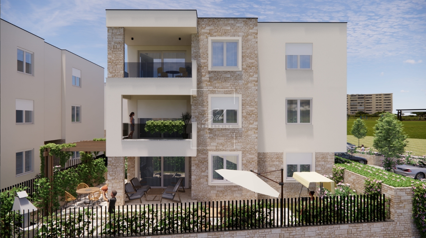 U ponudi je moderan i funkcionalan stan u prizemlju zgrade sa terasom, vrtom i parkirnim mjestom što ga čini idealnim odabirom za ugodan obiteljski život.