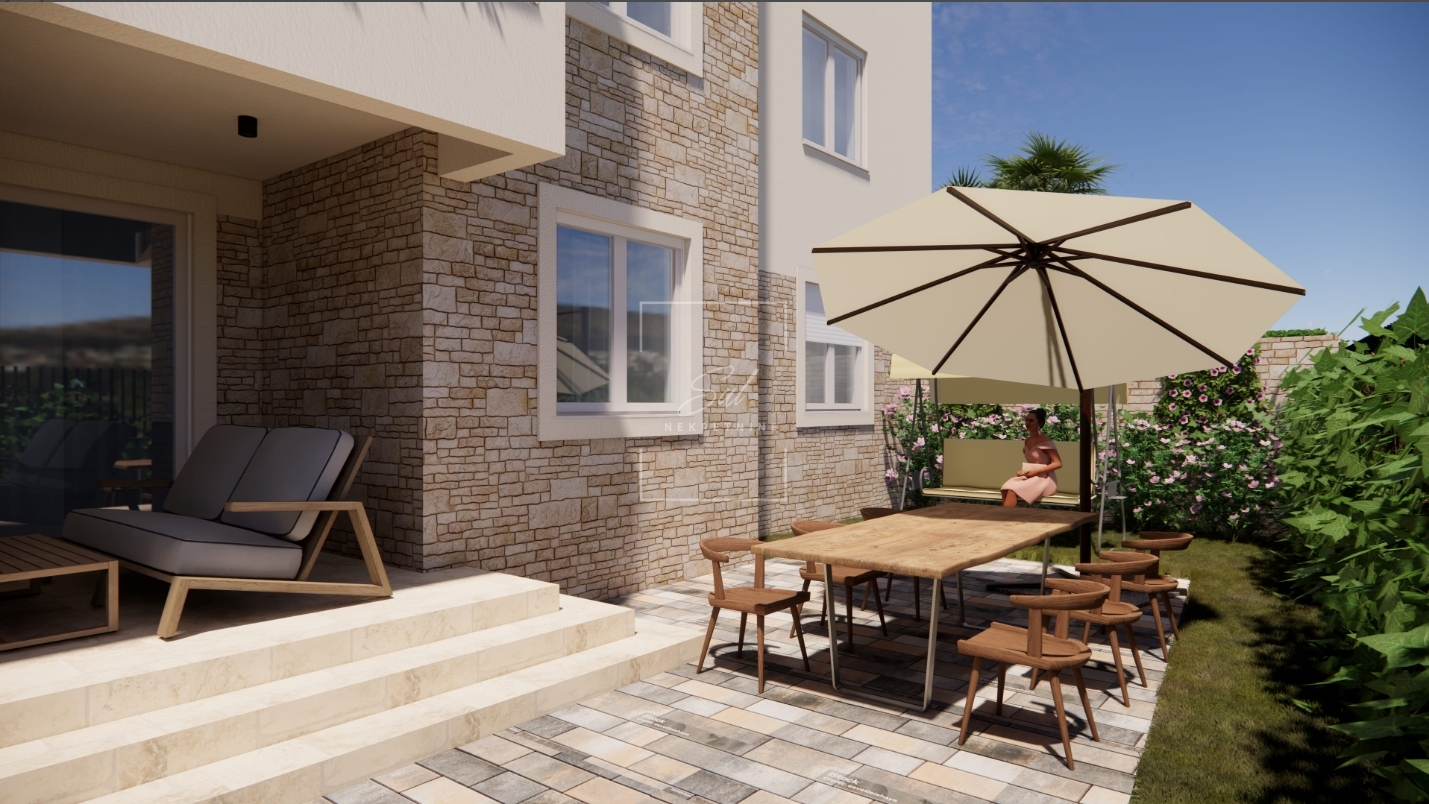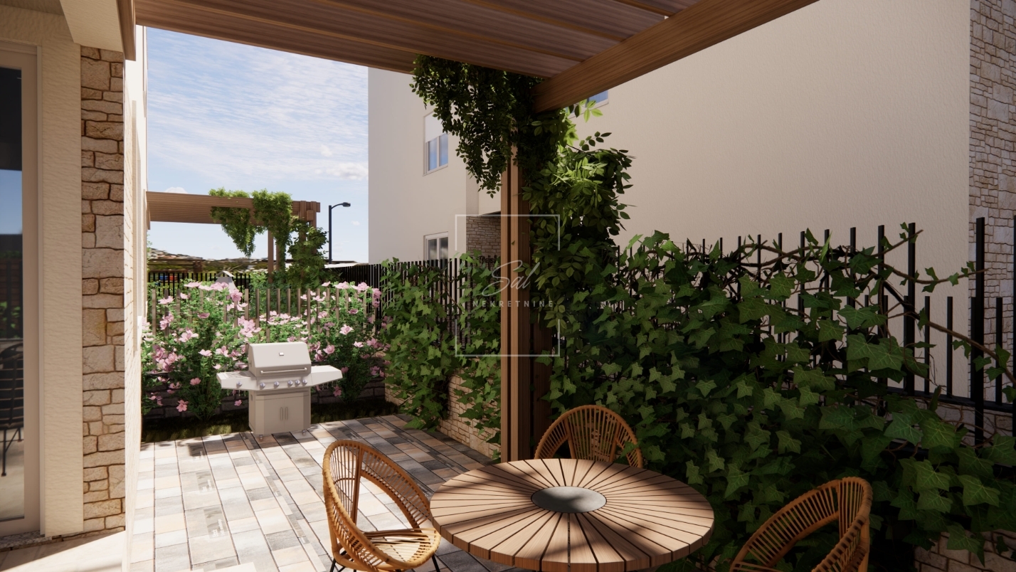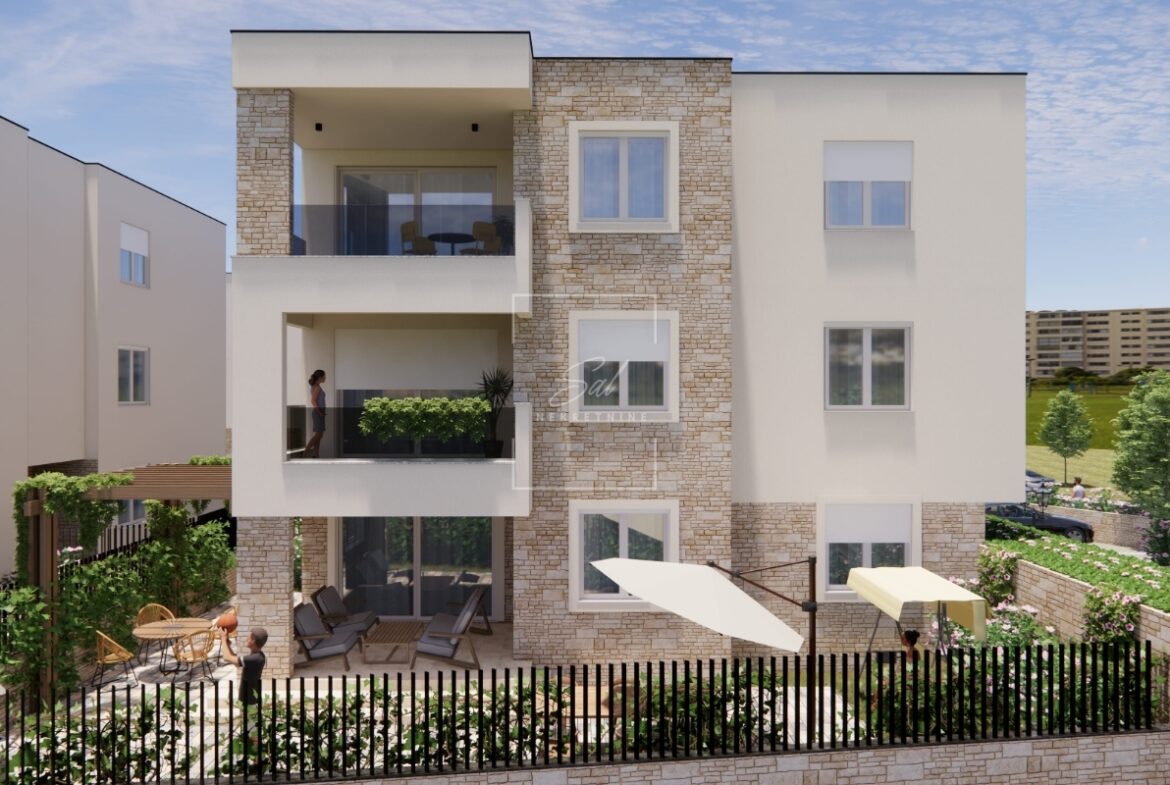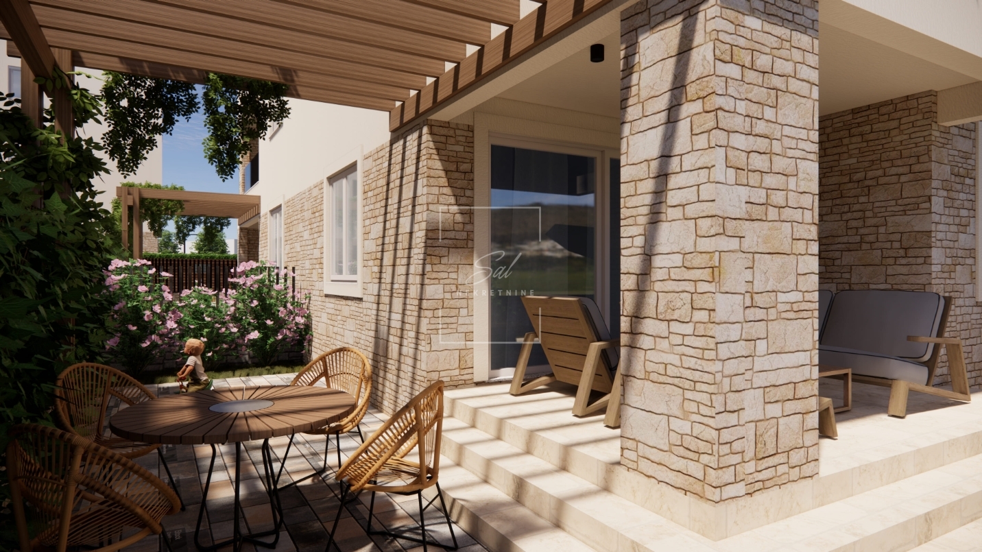 U ponudi je moderan i funkcionalan stan u prizemlju zgrade sa terasom, vrtom i parkirnim mjestom što ga čini idealnim odabirom za ugodan obiteljski život.