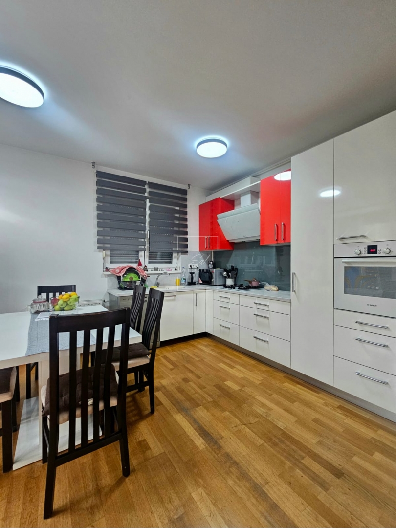 Moderna kuhinja (ostaje u stanu) potpuno opremljena svim aparatima: napa, frižider, perilica posuđa, pećnica,…