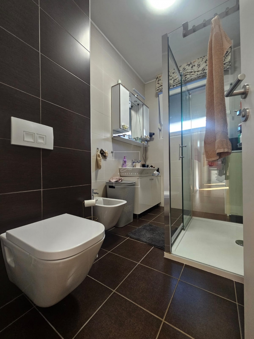 Stan se nalazi u manjoj zgradi sa samo 6 stanova, u mirnom okruženju s puno privatnosti. Zgrada ima 3 kata + podrum, a uz stan dolazi i osigurano parkirno mjesto odmah do ulaza.