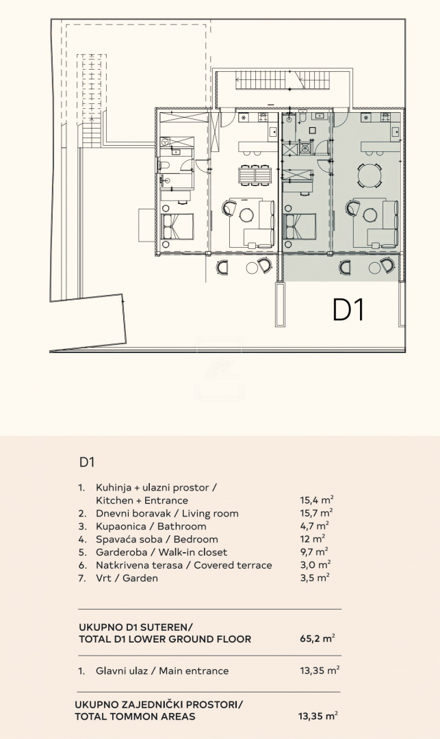 Prodaje se stan u luksuznoj novogradnji smješten u suterenu moderne zgrade s ukupno četiri stambene jedinice, u drugom redu od mora, u neposrednoj blizini Marine Dubrovnik.